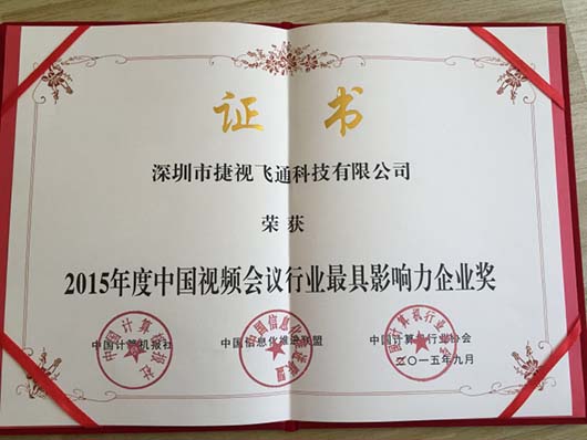 9月17日,由中國計算機報社和中國計算機行業協會主辦的的“第七屆中國行業信息化獎項評選活動暨2015中國行業信息化發展高峰論壇”在北京國賓酒店召開,捷視飛通科技有限公司榮獲“2015年度中國視頻會議行業最具影響力企業獎”,成為視頻會議領域的最大贏家并倍受矚目。