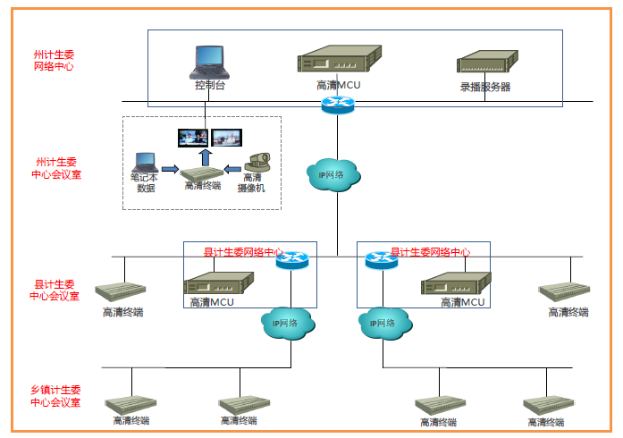 本次的視頻培訓會議設主會場和分會場,視頻會議設備主要由捷視飛通提供的高清MCU、MCV3000系列高清視頻會議終端、高清攝像機等構建,各級單位按需配備設備數量。主會場由會議領導參與,負責會議的組織和內容的培訓,分會場參會人員有各縣(市)衛生計生局分管副局長、基藥工作具體負責同志,鄉鎮衛生院院長(社區衛生服務中心主任)、藥房負責人等,實時學習會議內容,反饋各區意見。